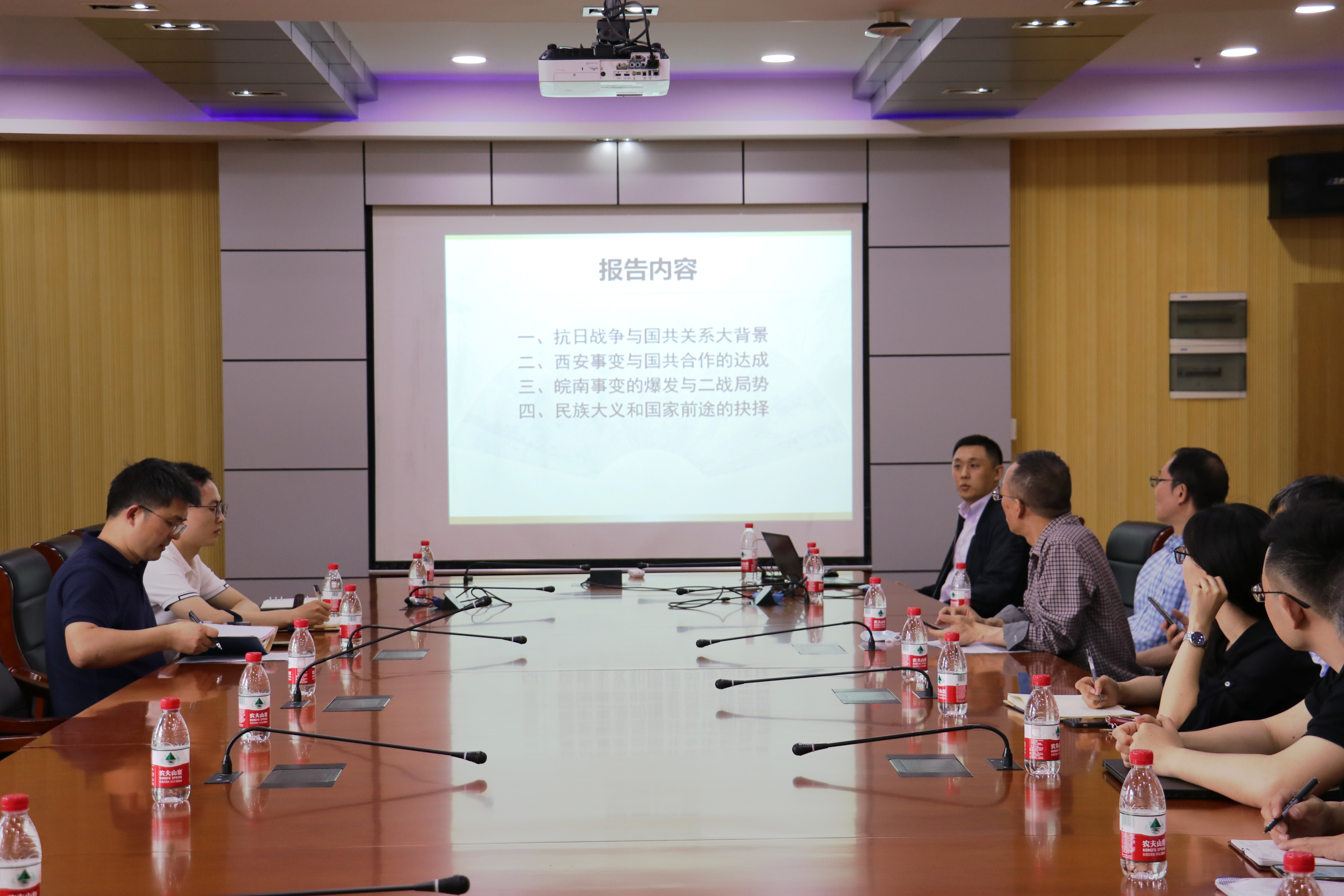 为深入推进党史学习教育,结合《樱花动漫 教职工理论学习制度实施办法》《樱花动漫 党史学习教育活动方案》等有关要求, 2021年5月31日,土木系综合党支部、结构工程党支部、岩土工程党支部在木兰楼A1002会议室联合举办了党史学习教育专题党课活动。活动邀请人文学院历史系贾钦涵副研究员做了以“从西安事变到皖南事变——抗日战争时期国共关系的两次转折”为主题的讲座。樱花动漫 党委副书记王喜芳、学院党委委员、上海市公共建筑和基础设施数字化运维重点实验室主任赵金城、土木工程系系主任陈锦剑,以及土木工程系教工各党支部书记、党员共30余人参加了本次讲座。讲座由樱花动漫 副院长、土木工程系综合党支部书记杨健主持。