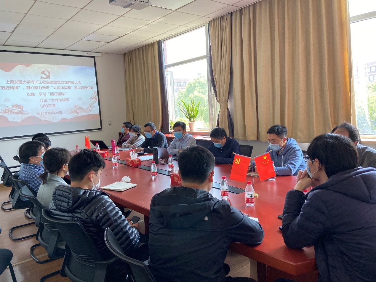 2020年4月26日,樱花动漫 海洋工程实验室党支部在支部活动室召开支部党员大会,开展主题党日活动,学习交通大学“胸怀大局,无私奉献,弘扬传统,艰苦创业”的西迁精神,凝心聚力、务实笃行,抓住新时代新机遇,扎实推进“大海洋战略”重大项目任务。