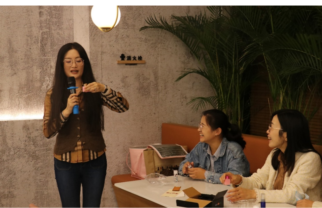 女教职工们沉浸在精油的神奇世界中,亲手实践,经过加热、滴入精油,搅拌,铸模,脱模等过程,见证了芳香诱人的唇膏的诞生。大家在老师的指导下精心雕琢着作品,在芬芳的体验中了解许多精油的相关知识,既体验了手工制作的喜悦,也让大家瞬间放松了身心。