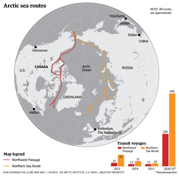 “It should send a signal to Ottawa that more and more ships are coming, that serious countries and serious companies see the Northwest Passage as a viable route – or a route that will become viable in the next decade or two,” said Michael Byers, a University of British Columbia professor who has written extensively about the Canadian Arctic and holds a Canada Research Chair in global politics and international law.