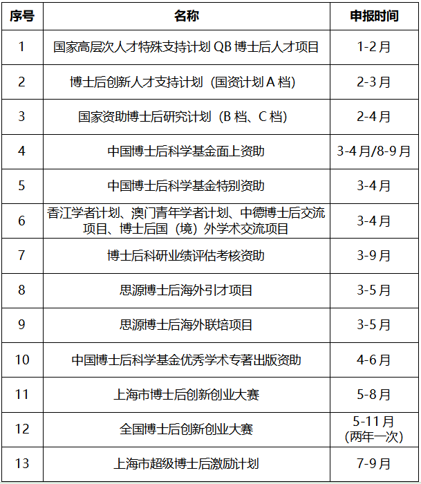 博士后各类人才计划和项目申报一览表