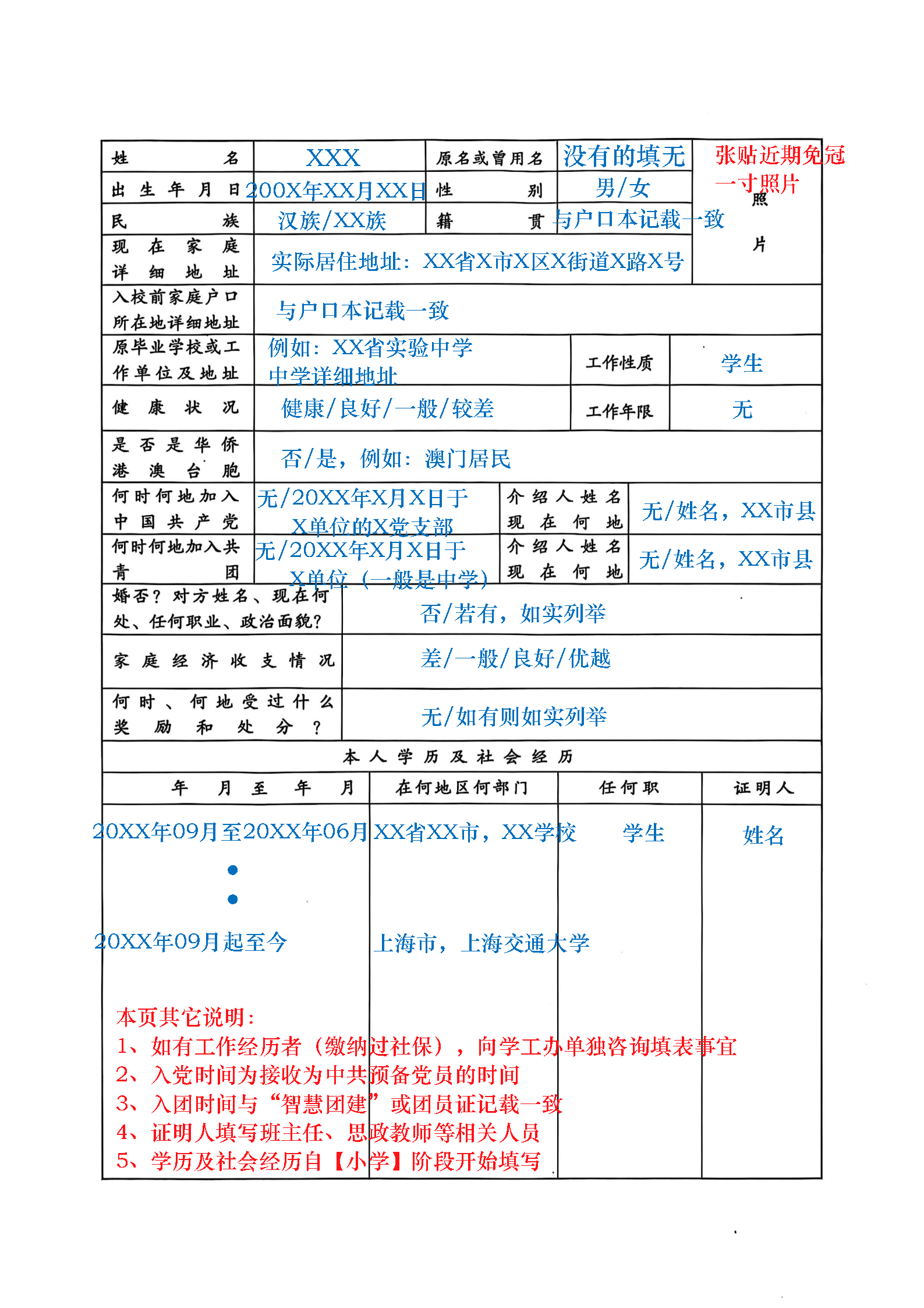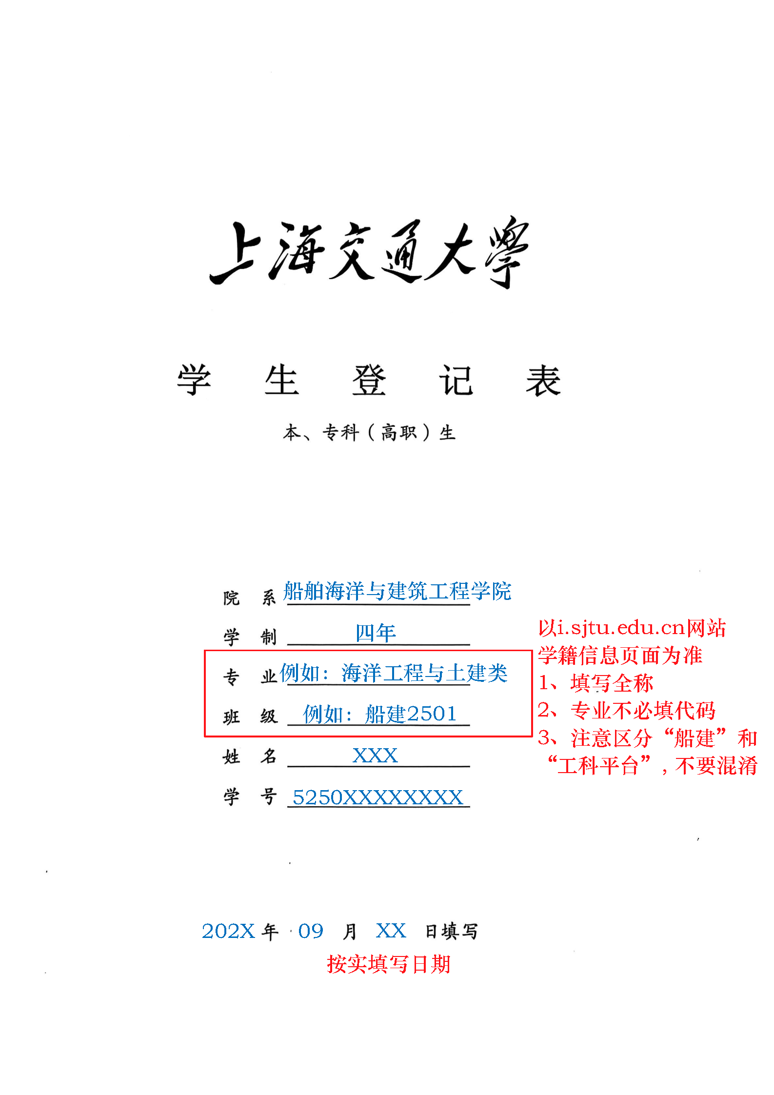 《樱花动漫 学生登记表》(本科生入学登记表)填表说明