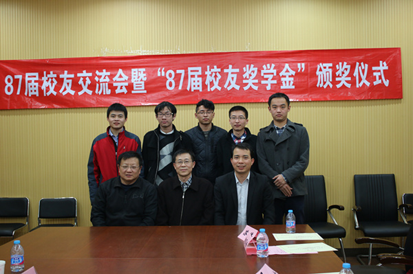 87届校友座谈会暨87届20131船舶动力奖学金颁奖仪式在木兰船建大楼A211会议室举行。87届校友、中远海运资产运营经营管理有限公司张嘉庆,87届校友、中国机械工业集团有限公司合肥通用机械研究院徐家新,学院党委副书记杨建军,5位奖学金获奖学生出席了仪式。