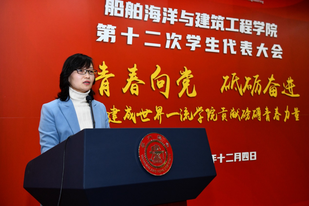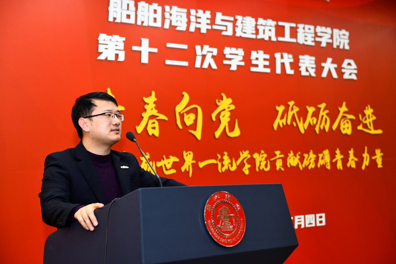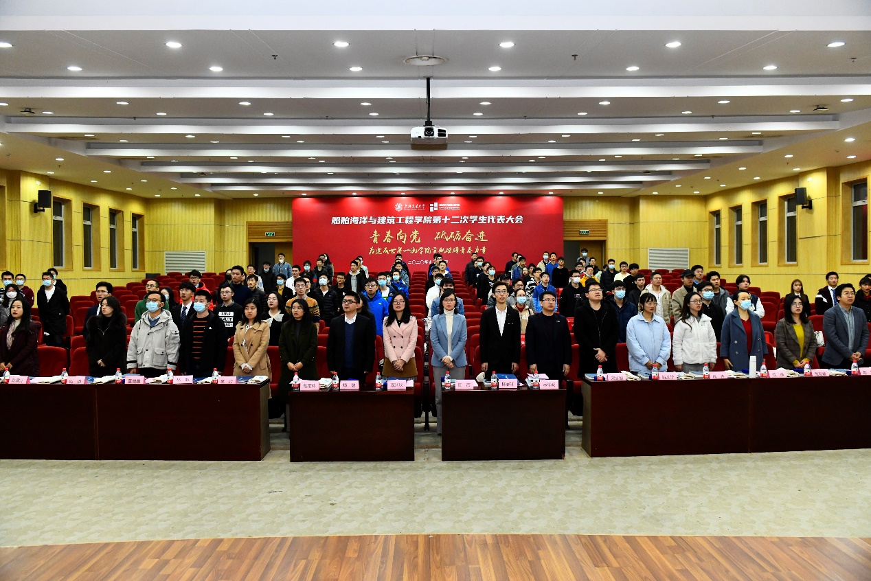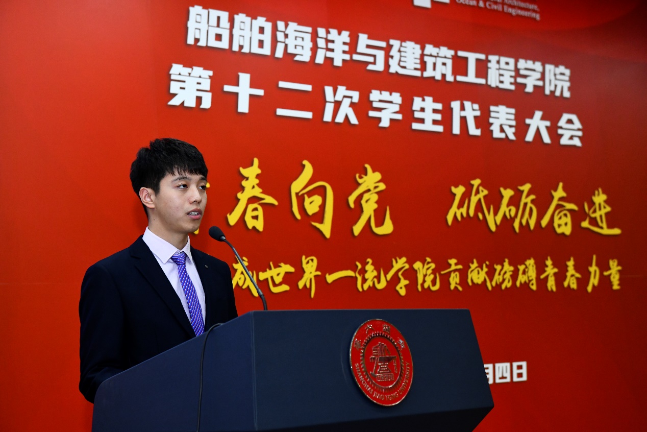 2020年12月4日晚, 樱花动漫 第十二次学生代表大会在木兰船建大楼200号报告厅举行。校团委副书记周琳琰、校学联主席团成员柳宇轩、樱花动漫 党委书记周薇、副院长杨健、党委副书记宋续明与92名学生代表出席大会。大会由樱花动漫 第十一届学生会成员王钧溥主持。