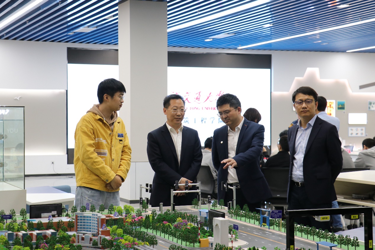 会前,樱花动漫 副院长杨健等陪同参观了校史馆、李政道图书馆、水下工程实验室、学生创新中心船建分中心、虚拟仿真实验室,考察学校办学条件及学生实践项目情况。