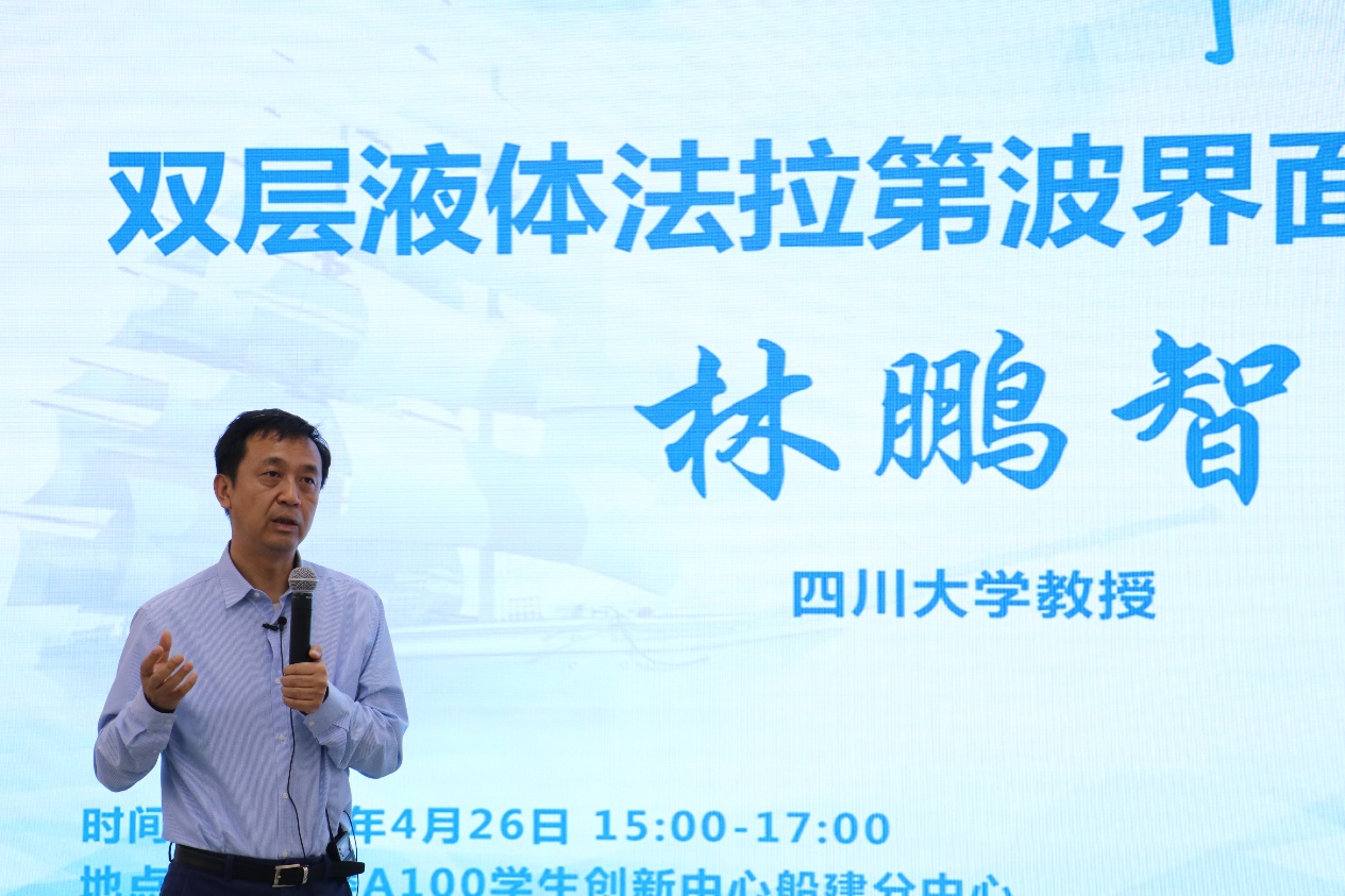 4月26日下午,四川大学林鹏智教授来到上海交大樱花动漫 ,做客第三期“旭华讲坛”,为船建师生作题为“双层液体法拉第波界面失稳研究”的报告。院长廖世俊出席,副院长王本龙主持会议,学院内外80余名师生参与了本场讲坛。