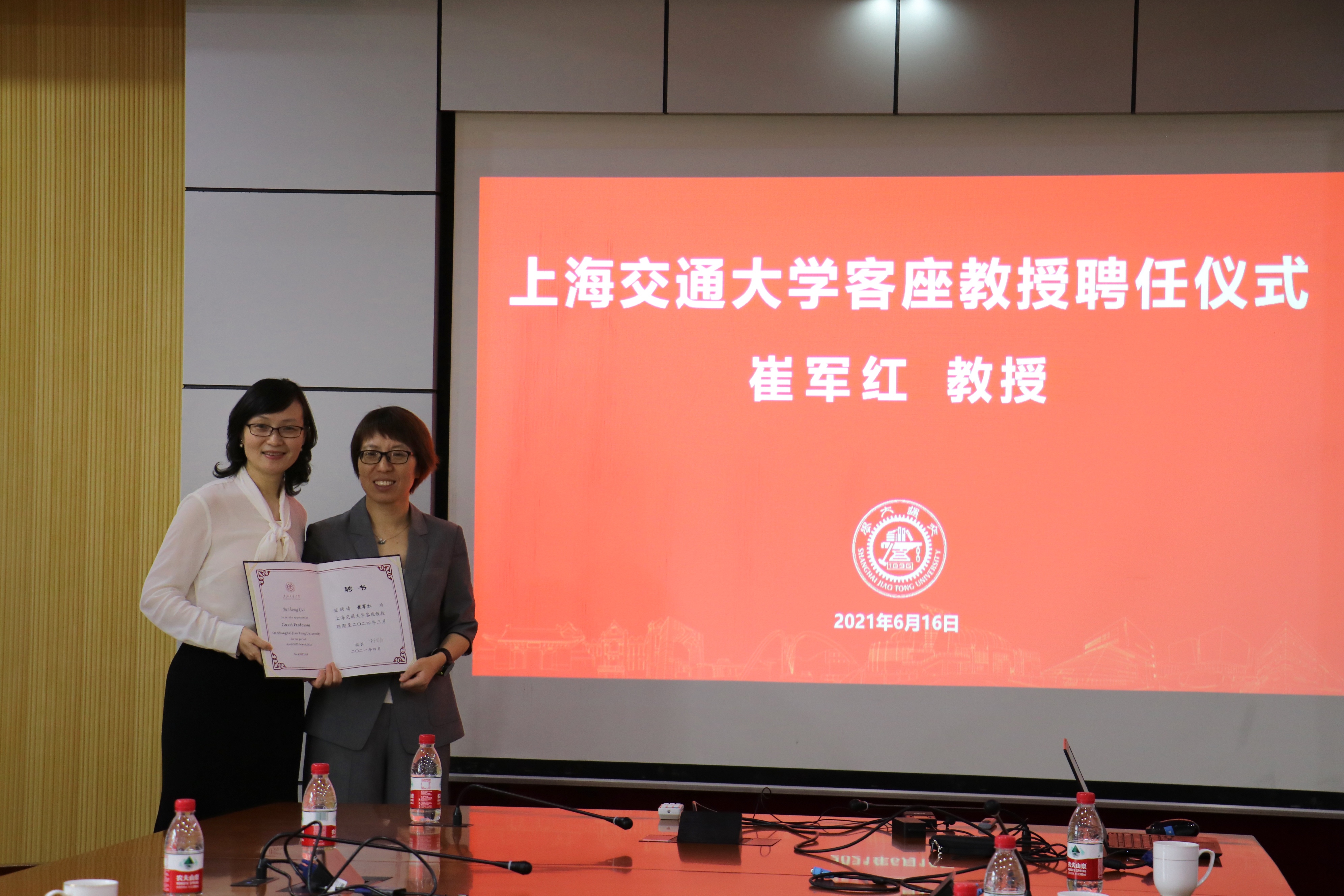 廖世俊介绍了崔军红教授的学术成就和主要研究领域。欢迎仪式后,周薇书记代表学校授予崔军红“樱花动漫 客座教授”并颁发聘书。崔军红教授表达了对学校和樱花动漫 的衷心感谢,她表示今后会在智慧海洋技术领域为学校的人才培养和学术交流做出积极贡献。