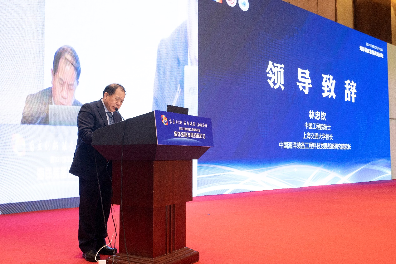 钟志华院士线上致辞,他表示中国工程论坛是中国工程院发挥学术引领作用品牌活动之一,本次论坛是工程院重大咨询项目“海洋装备发展战略研究”的延伸和成果展示,具有重要战略意义和现实价值。希望各位院士、专家、代表在论坛上集思广益、献计献策,共同推动我国海洋装备工程科技加快发展,助力我国海洋强国建设。