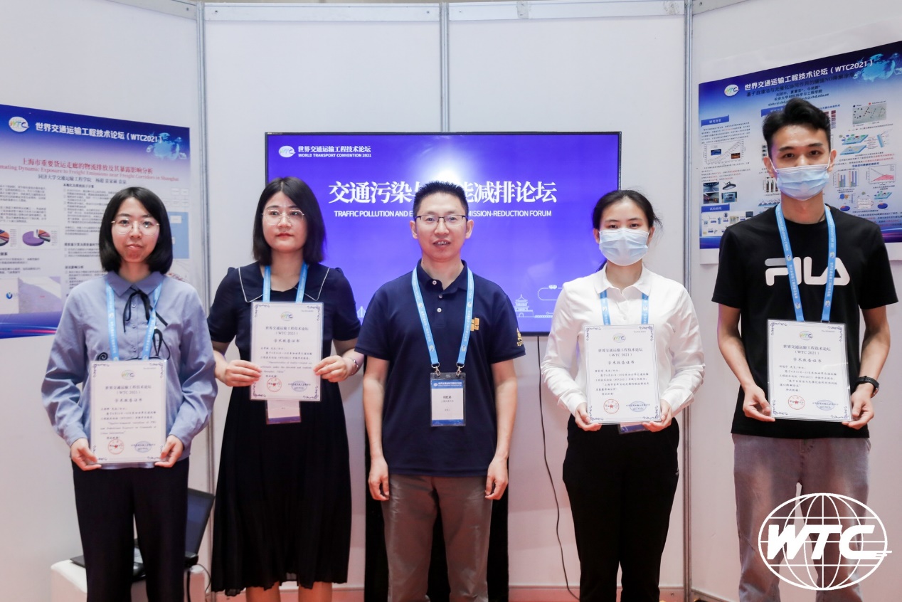 除了现场的演讲环节,本次WTC会议还设有优秀墙报报告评选活动,在800多份墙报中遴选出5%的优秀作品。经过激烈的角逐,交通系2019级研究生王梓烨同学(导师:何红弟副教授)和2020级研究生王壮壮同学(导师:汪涛助理研究员)提交的墙报作品获优秀墙报奖,并出席了世界交通运输工程技术论坛(WTC2021)优秀墙报报告的颁奖仪式。