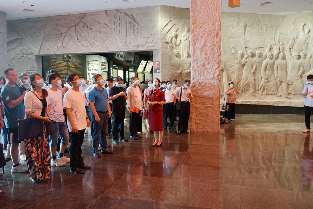 在南湖纪念馆宣誓墙前,胡昊领誓,党员们面对鲜红的党旗,庄严举起右手,重温入党誓词,让思想和灵魂受到了一次特殊的洗礼。