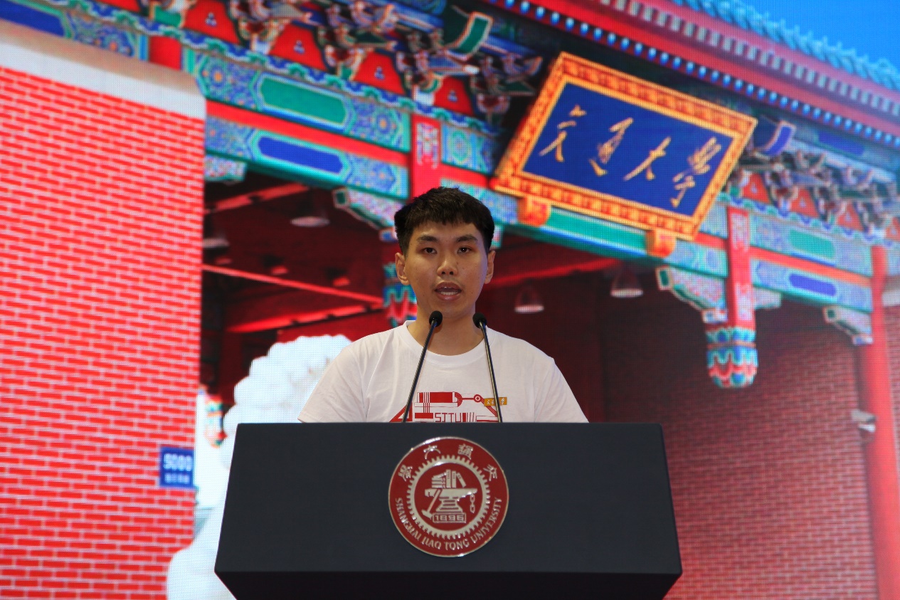 2021届本科毕业生、2021级硕士新生代表、船舶与海洋工程系林浩安同学发言。他分享了自己本科四年的历练和成长,勉励本科新生遇到困难时要坚定步伐,勇于行动。并表示作为交大人在新时代中也将砥砺使命,成长为有知识、有担当的新青年。