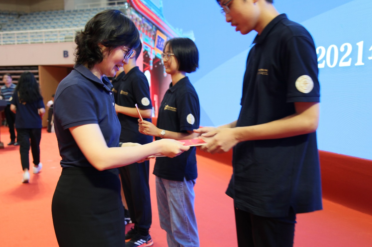 2021年正值建党一百周年,百年恰是风华正茂。党的事业发展需要青年,青年学子的成长成才更离不开党的指引。学院党委书记周薇为递交了入党申请书的2021级新生代表赠送《中国共产党章程》,鼓励各位入党申请人能更好地学党章、知党史,以实际行动积极向党组织靠拢。