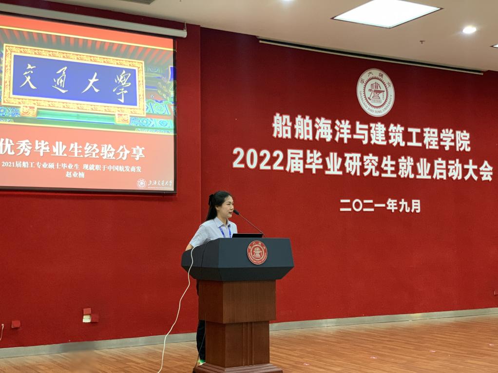 2021届船工专业硕士毕业生、中国航发商用航空发动机有限责任公司燃烧室部助理技术员赵业楠向学弟学妹们介绍了她的求职经验。赵业楠对中国商发进行了全面介绍,详细介绍了她在商发的面试经历。她也告诉学弟学妹求职路上的迷茫很难避免,但要坚定自己的道路,更要在求职时准备充分,以良好的心态面对失败。