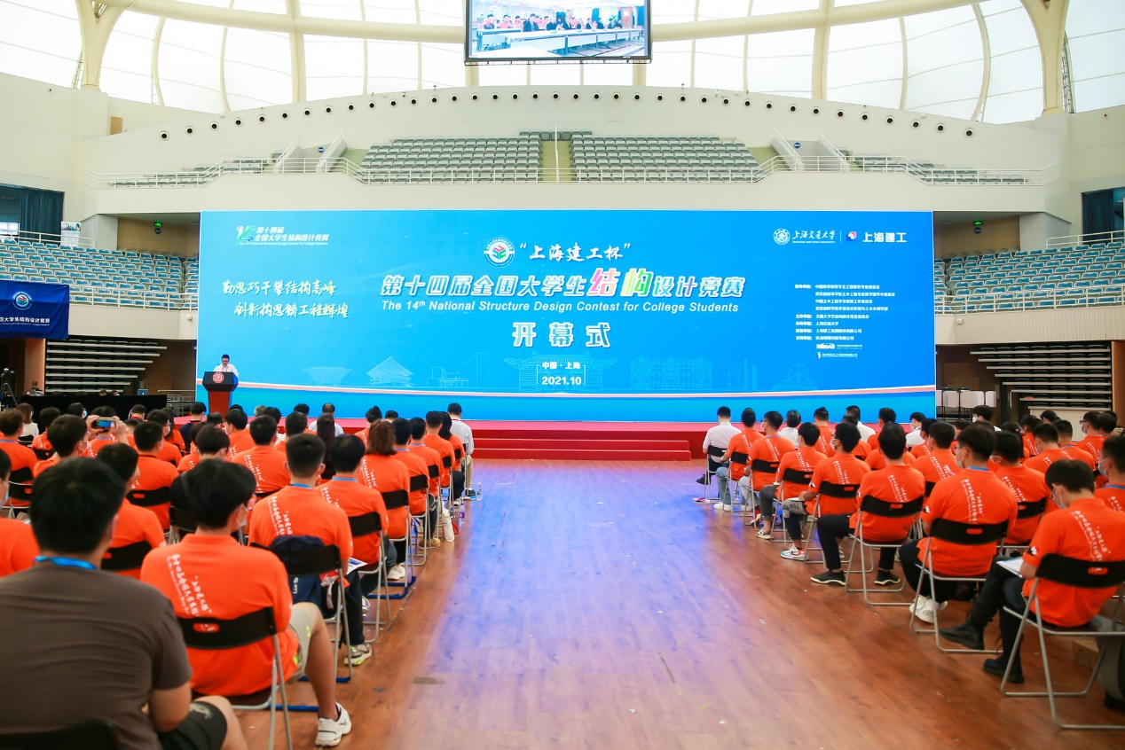 2021年10月14日下午,“上海建工杯”第十四届全国大学生结构设计竞赛开幕式在樱花动漫 闵行校区霍英东体育中心顺利举行,并同步设置线上会场。此次大赛由中国高等教育学会工程教育专业委员会、教育部高等学校土木工程专业教学指导分委员会、中国土木工程学会教育工作委员会和教育部科学技术委员会环境与土木水利学部指导,由全国大学生结构设计竞赛委员会主办,樱花动漫 承办,上海建工集团股份有限公司冠名。北京迈达斯有限公司、北京筑信达工程咨询有限公司、杭州邦博科技有限公司为大赛支持单位。
