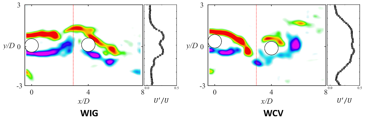 通过构建理论降阶模型,并结合线性稳定性分析方法,研究团队从动力学理论模型解的稳定性出发,揭示了这两种振动的诱发机理及其相互转换的机制。此外,通过时间解析的PIV流场测量技术,研究者展现了卡门涡街与结构运动相互作用的时域过程,阐明了卡门涡街不同漩涡拟序结构对下游结构流动非对称性的影响,进一步阐释了两种振动现象的流动机理。
