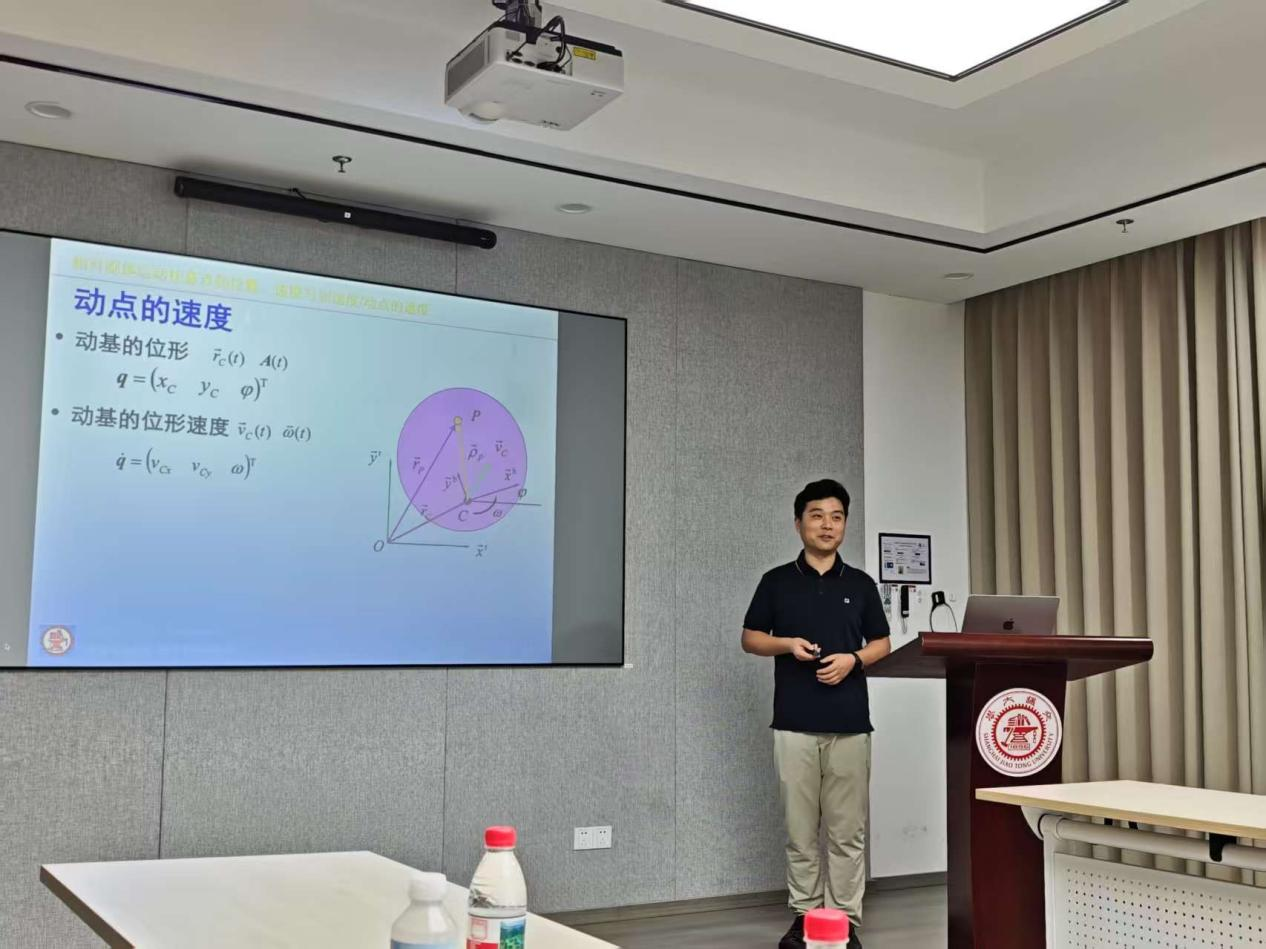 本次试讲由工程力学系副系主任刘铸永主持。他介绍了试讲评审的流程和评审标准,并强调此次试讲不仅是对青年教师个人能力的考核,更是学院传承优秀教学传统、保障教学质量的重要环节。在试讲过程中,胡韡老师充分展现了自己的专业素养和教学能力,以清晰的逻辑、生动的讲解,对理论力学中的复杂知识点进行了深入浅出的讲解。