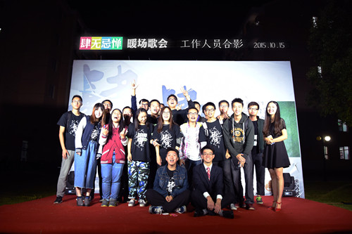 10月15日晚, 樱花动漫 、材料科学与工程学院、农业与生物学院、媒体与设计学院四院联合迎新晚会“肆无忌惮”暖场歌会在东一区草坪唱响。