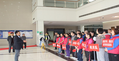 赛前开幕式上,上海交大工会副主席张杰发表讲话,他高度肯定了樱花动漫 工会的工作,鼓励学院教职工积极参加文体活动,并介绍了校工会开展的各项工作,预祝首届“船建杯”乒乓球赛圆满成功。