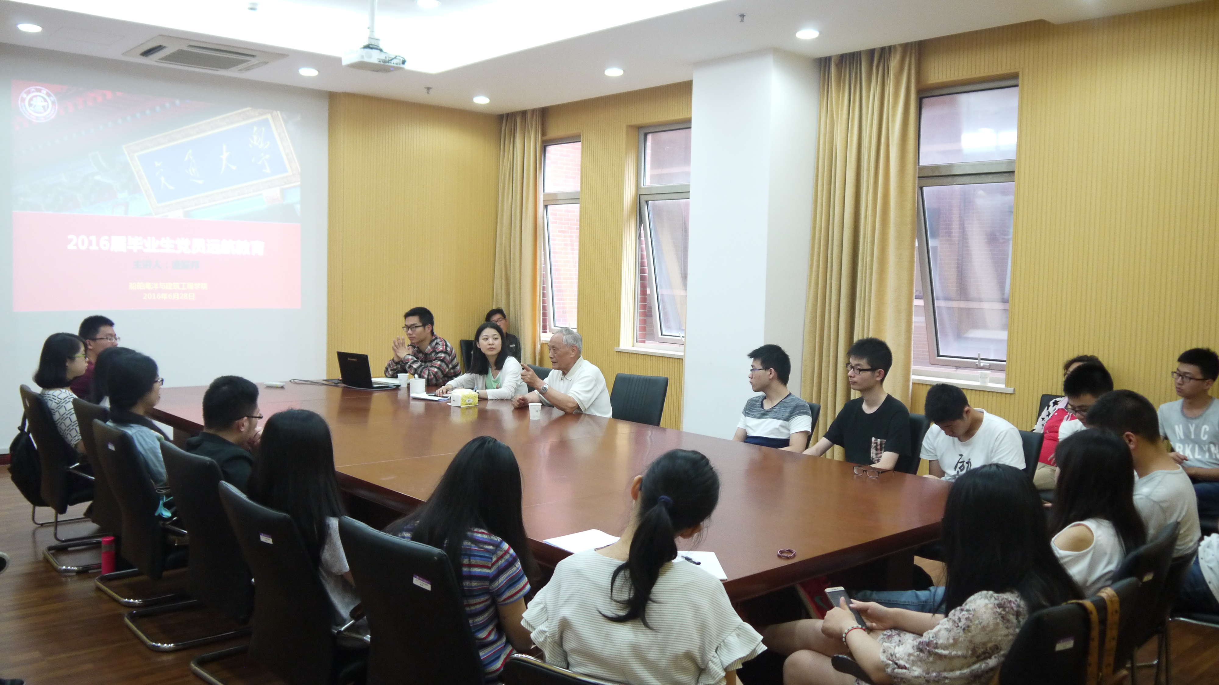 6月28日,樱花动漫 2016届毕业生党员远航教育在木兰船建大楼A211室举行,此次座谈邀请到了上海交大原副校长兼研究生院院长盛振邦,盛振邦同时也是船舶海洋与工程流体力学学科的创建者之一,座谈由学院学生工作办公室教师苏鏐鏐主持。