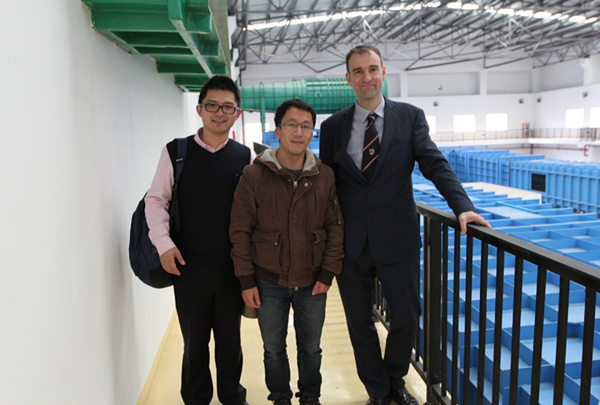 下午,Mark Sterling教授参观了多功能拖曳水池以及风洞实验室。拖曳水池主任李晔以及风洞实验室工程师代燚会见了来宾。