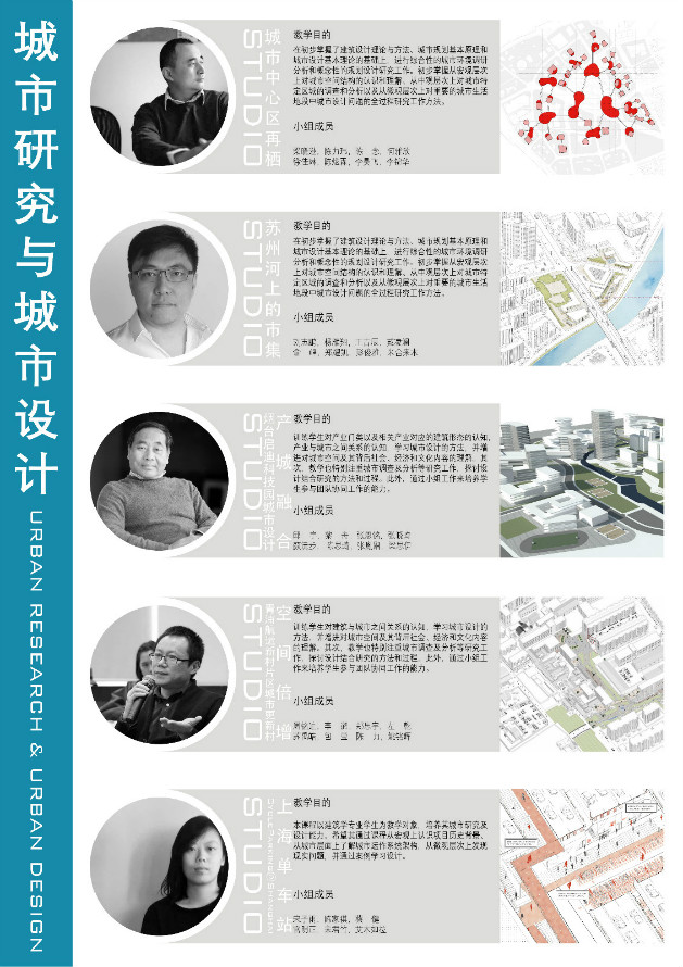 从概念到物化 FROM CONCEPT TO OBJECT 重庆巴南美术馆 南旭(NAN Architects 主持建筑师) 从系统逻辑到建筑 石溪(曦潮万物 合伙人) 城市微综合体 袁牧(德懋堂投资有限公司首席建筑师) 李谦(普泛建筑工作室 创始人、主持建筑师) 新媒体中心加建 张朔炯(一栋建筑设计工作室 合伙创始人、主持建筑师) 四年级(建筑学2013级本科生) 城市研究与城市设计 URBAN RESEARCH & URBAN DESIGN 产城融t合:烟台启迪科技园城市设计 韩宝山(苏州设计研究院设计总监) 苏州河上的市集 何孟佳(瑞士Playze建筑事务所主持建筑师、合伙人) 上海单车站Cycling@shanghai 王卓尔(Ο筑设计创始人) 空间倍增:青浦航运新村片区城市更新 冯路(无样建筑工作室创始人、主持建筑师) 城市中心区再栖 卜冰(集合设计创始合伙人与主持设计师) (排名不分先后)