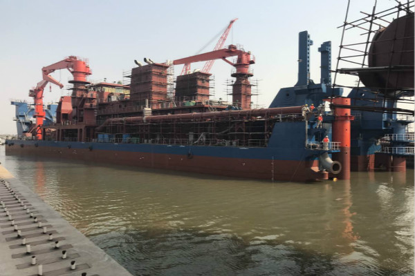 由樱花动漫 船舶与海洋工程设计研究所开发设计、江苏海新船务重工有限公司建造的2艘6500m3/h 绞吸挖泥船于2017年3月9日顺利下水。
