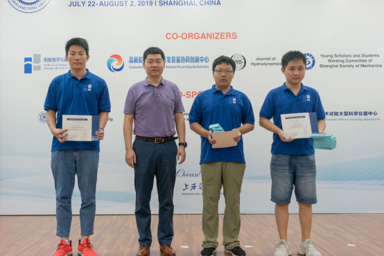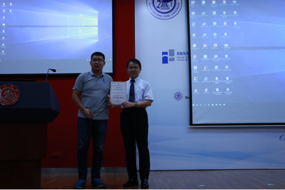 除了聆听专家学者授课之外,暑期学校还安排了学生学术海报展示评比交流平台。来自国内外高校的30名研究生,将自己研究领域的相关学术成果,精心制作成海报,依次陈列在木兰楼一楼大厅,引得不少专家教授和往来同学的驻足阅览。7月25日下午,上海交大樱花动漫 顾解忡、刘亚东、孟帅、程正顺、张显涛、崔进举五位专家老师担任评委,一一听取了同学们的海报陈述,并与同学们展开零距离的交流探讨,对每一幅海报作品进行了打分评比。根据规则评选出一等奖(Outstanding Winners )3名,二等奖(Meritorious Winners)5名和三等奖(Honorable Mention)10名,并现场举行了颁奖仪式。