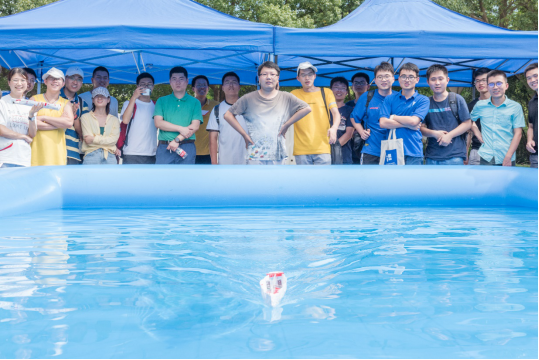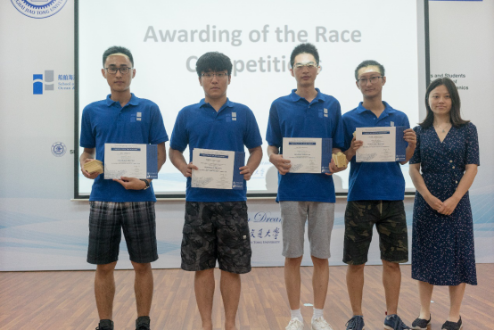 同时,为了让学员们互相增进了解,将理论融入实践,暑期学校首次举办了船模竞速赛。学员们自行组队,每组在一周内利用课余时间分别制作一艘限重船和一艘无限制船,并于7月31日下午举行了竞速比赛,邀请了浙江大学白勇教授、上海交大樱花动漫 余龙、冯正平、顾解忡三位专家老师,以及全国海洋航行器大赛获奖学生于特担任评委。每条船的船型设计满分为20分,竞速成绩满分为30分,根据规则评选出了一等奖团队(Outstanding Winners )2支,二等奖团队(Meritorious Winners)3支和三等奖(Honorable Mention)团队5支。
