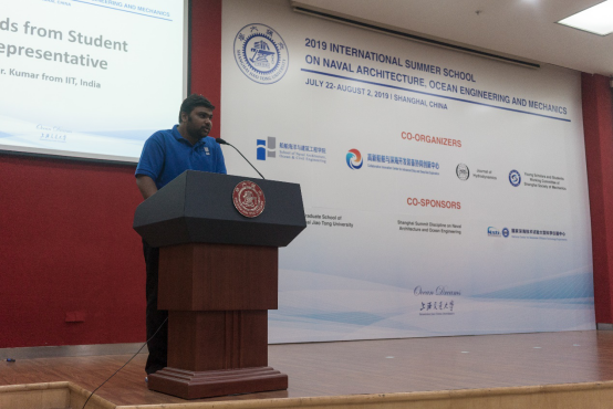 8月2日上午,“船海纵横”——2019年船舶海洋工程与力学国际暑期学校在木兰楼A200举行了闭幕仪式,至此为期两周的精彩活动圆满落下帷幕。首尔大学Yonghwan Kim教授、樱花动漫 副院长夏利娟、国际化与对外发展办公室高艺、学生工作办公室史舒婧出席闭幕仪式,仪式由暑期学校项目负责人、船工系副系主任余龙主持。