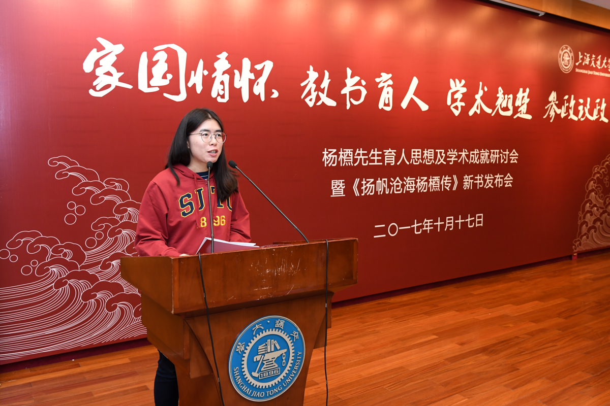 杨槱先生始终心系学校人才培养工作。他个人生活勤俭节约,却先后捐赠了毕生积蓄的一百多万元人民币,设立“杨槱院士奖学金”,激励广大学子奋发图强、勇攀科学高峰。“杨槱院士奖学金”获得者、2016级船舶与海洋工程研究生陈熠画在发言中表示,杨院士对国家、对船舶的热爱以及执着奋进的精神,犹如一盏明灯照亮了自己的人生道路,希望自己以后也能够为国家的船舶事业做出一点贡献。她表示将一直怀着对杨院士的感激之情,珍惜宝贵的学习机会,刻苦钻研,树立责任意识,积极投身于国家的海洋事业。