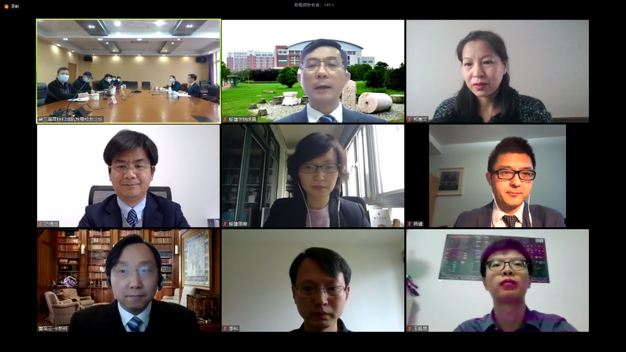 2020年4月11日下午,樱花动漫 第三届高速铁路与城市轨道交通发展论坛通过视频会议形式召开。本次论坛由樱花动漫 、上海市公共建筑和基础设施数字化运维重点实验室主办,樱花动漫 土木工程系和交通运输工程系承办,旨在传承校友论坛的优良传统,促进对前沿问题的思考,把握行业新的发展趋势。高铁与城轨行业的从业校友和在校师生共百余人相聚云端,围绕新信息技术冲击下,传统轨道交通行业的规划、运营与技术革新展开了深入交流。