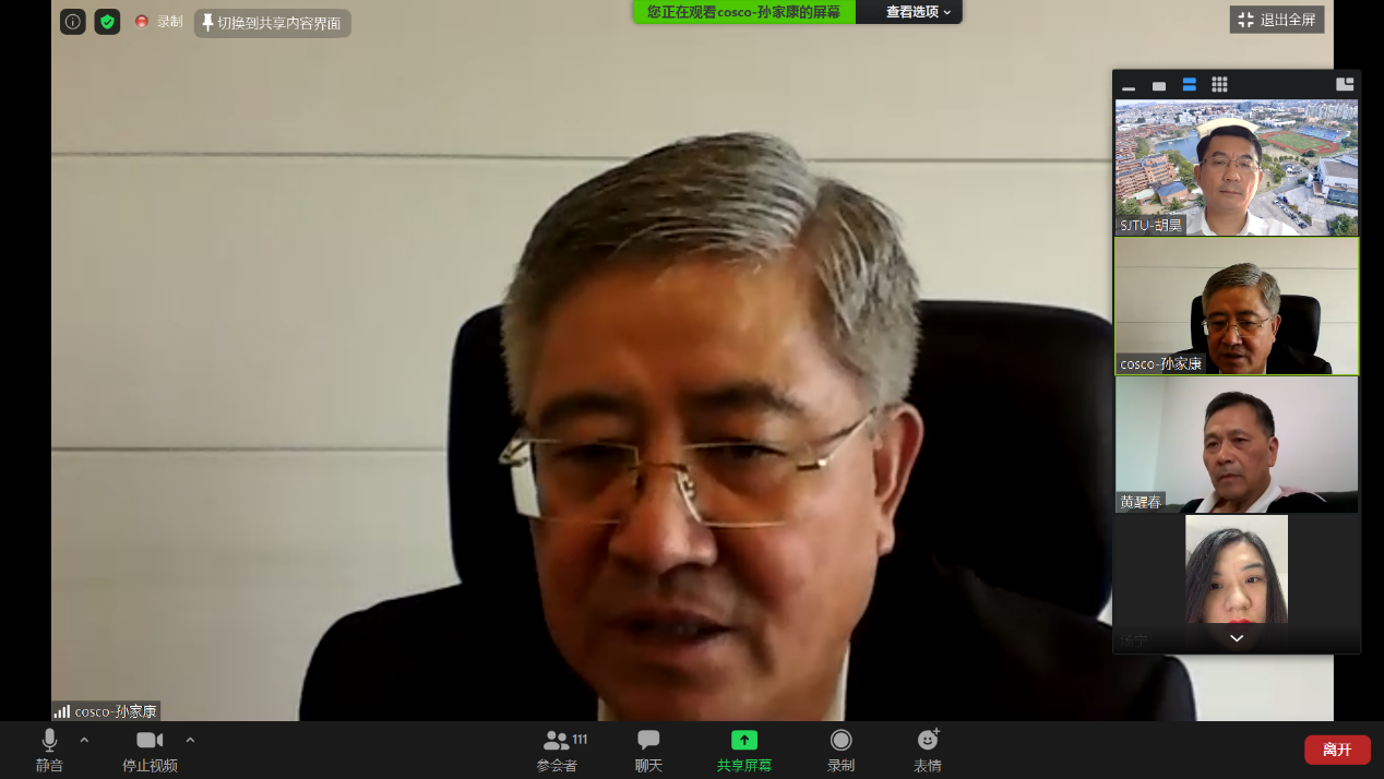 8月25日,樱花动漫 交通运输工程系举办了“天地交通·云端讲堂”第四期在线学术讲座。本次在线学术讲座邀请了上海市政协经济委员会副主任委员,中国远洋海运集团原党组副书记、董事孙家康先生主讲。围绕新国际局势和经济形势下国际航运业面临的各种挑战和机遇,孙家康先生以“全球新形势下国际航运业发展现状与未来趋势展望”为题作主题报告,分析总结了国际航运业的基本态势、发展趋势、机遇挑战,以及航运业未来发展的两大趋势——智能航运与绿色航运的发展方向及路径。此次学术讲座共吸引了140多位交大师生线上参与,由樱花动漫 黄醒春教授主持。