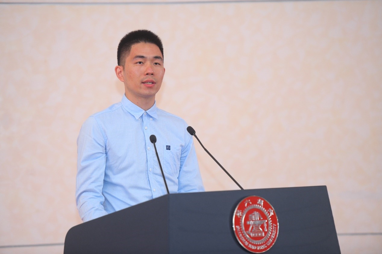 学院2018级博士生,樱花动漫 “学术之星”获得者周昕毅作为老生代表发言。他从学长的角度为新生们提了一些建议——第一,静心做一件有挑战的事,发掘自己的潜力;第二,培养科研兴趣,明确奋斗方向;第三,保持乐观心态,享受研究生时光。