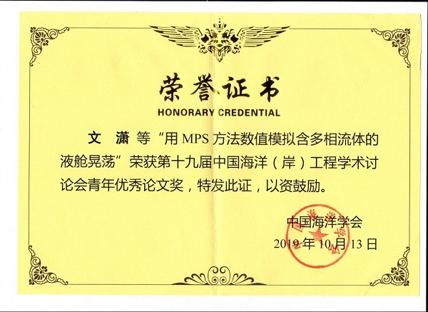 船建学子荣获第十九届中国海洋(岸)工程学术会议青年优秀论文奖