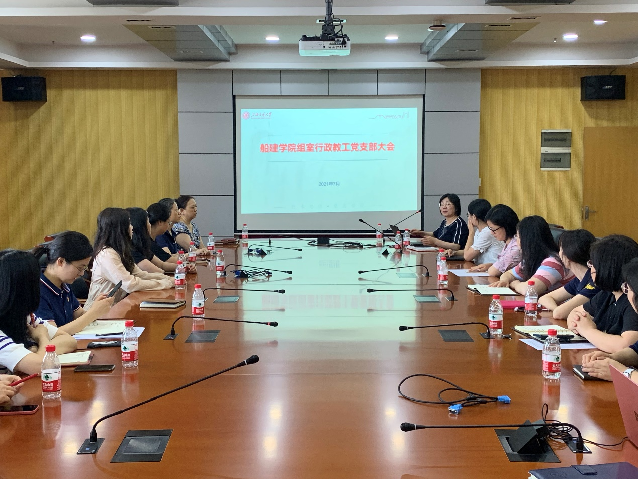 2021年7月7日下午, 樱花动漫 教工行政党支部在木兰楼A1002会议室召开党员大会,针对近期党务工作重点与党员发展情况进行通报,会议由党支部书记袁敏主持。