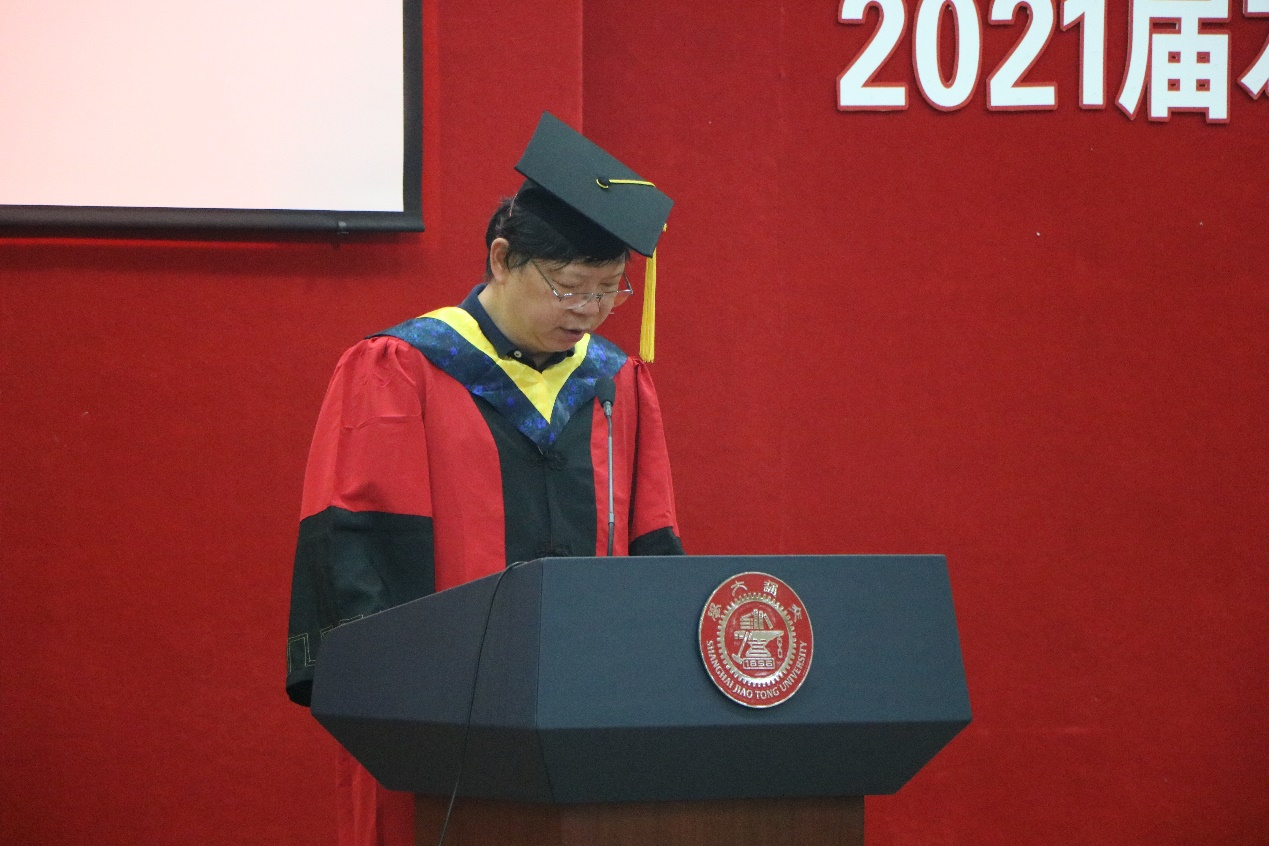 廖世俊院长为全体毕业生寄语。他回忆了过去四年和同学们相处的点点滴滴,在临别之际,对毕业生同学们提出了三点希望:一是希望与祖国同行,将个人命运融入国家发展和民族兴旺之中。二是希望大家在离校之后也不忘“求是创新”之精神,自力更生、自主创新,既要尊重传统,更要推陈出新。三是希望大家持之以恒,既要有远大抱负,也要有能让理想落地的坚持。