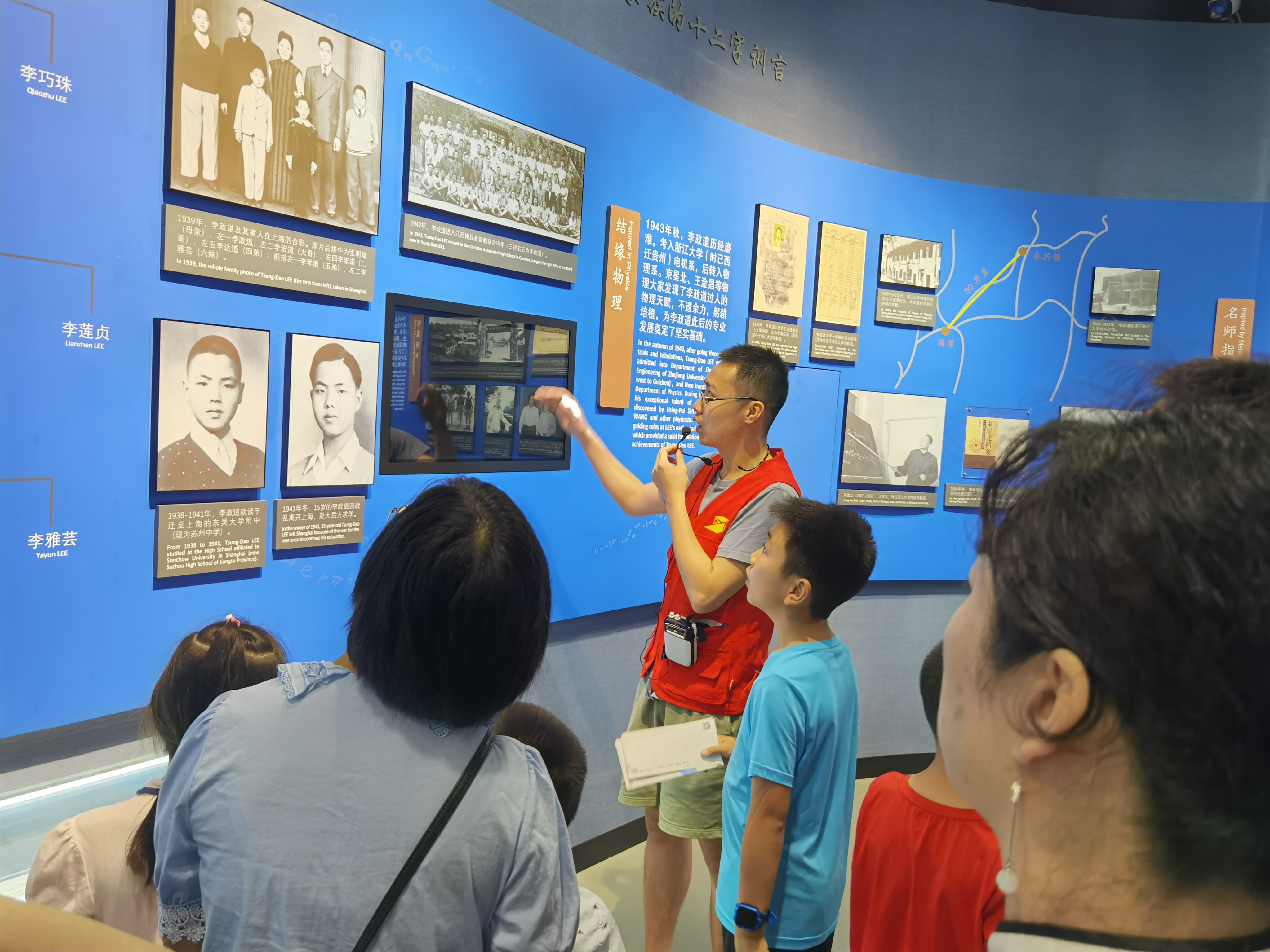 在李政道图书馆参观中,讲解员为大家生动讲述了李政道先生的奋斗的生平,获得诺贝尔奖的经过及为祖国培养大量人才的故事。过程中,讲解员也向大家解释了悬刻在图书馆进门上方的李政道密码含义并展示了国内馆藏唯一的诺贝尔奖奖章,令人叹为观止。