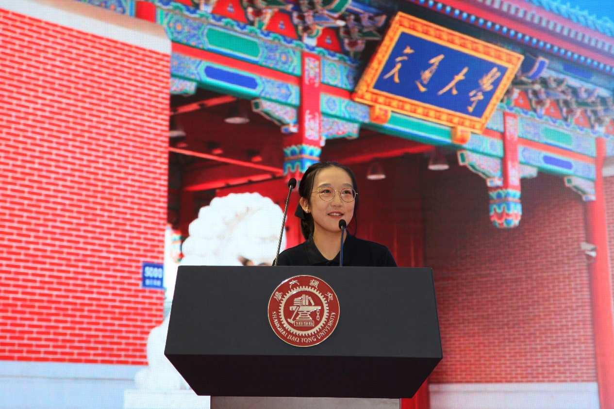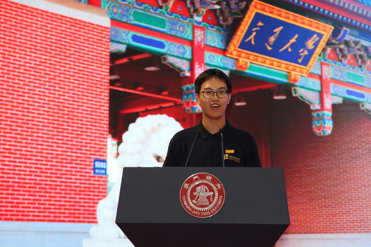 2021届本科毕业生、2021级硕士新生代表、船舶与海洋工程系林浩安同学发言。他分享了自己本科四年的历练和成长,勉励本科新生遇到困难时要坚定步伐,勇于行动。并表示作为交大人在新时代中也将砥砺使命,成长为有知识、有担当的新青年。