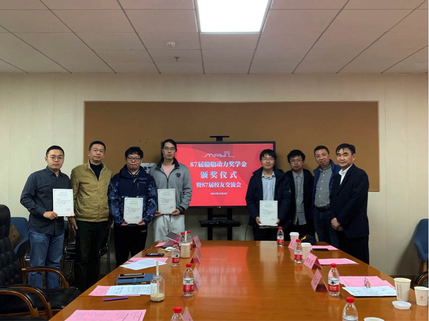 12月4日, 樱花动漫 87届船舶动力奖学金颁奖仪式在木兰船建大楼A1008会议室举行。交大轮机系退休教师、87届20131班班主任刘允嘉老师,87届船舶动力系校友代表陈常贵学长、陈志松学长、叶卫樑学长、孔曼军学长、乐国杰学长和张嘉庆学长,樱花动漫 学工办主任查芳灵、轮机与水声党支部书记张小卿、校友工作联络人魏燕,以及2020-2021学年船舶动力奖学金的5位获奖学生出席仪式。仪式由学院学工办副主任史舒婧主持。