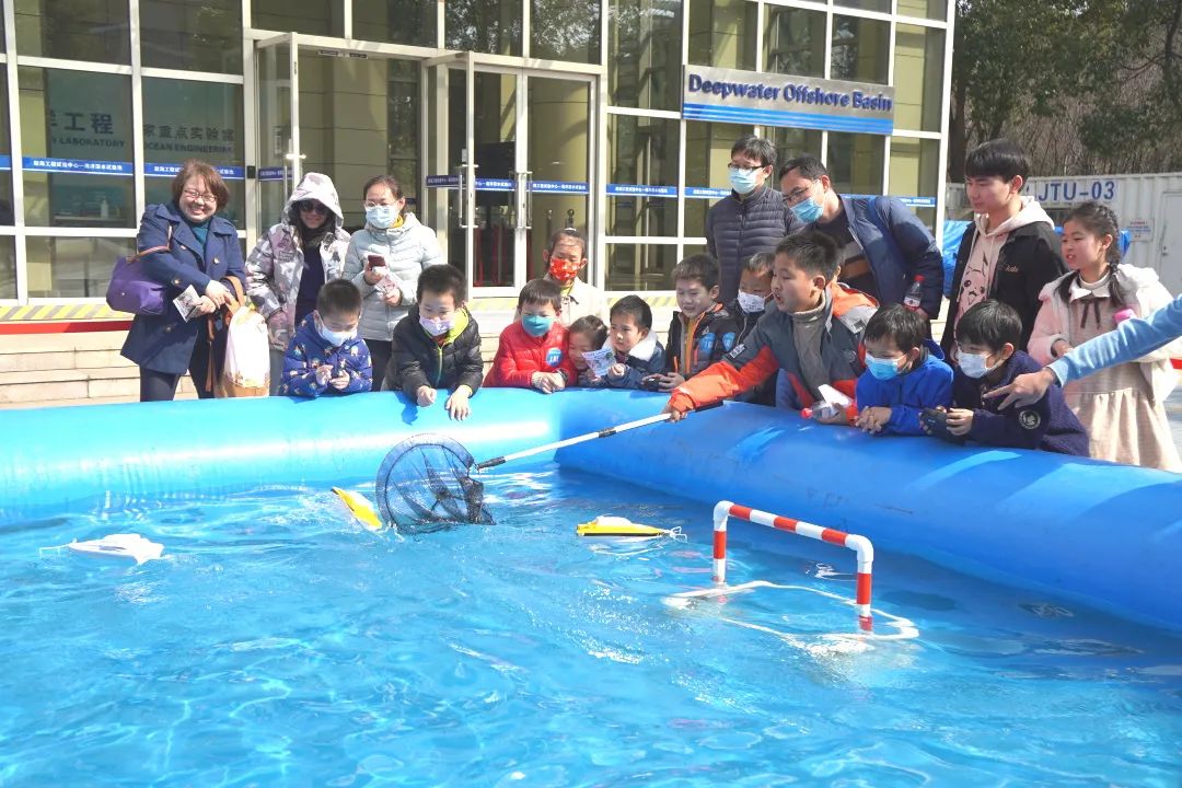 随后,“交小苗”们分成三队,分别跟随樱花动漫 副院长、船海工程试验中心主任彭涛老师,土木工程系教授、结构设计竞赛“金牌教练”宋晓冰老师等,在志愿者们的引导下,分别体验深海探险家、时空小信使、国际航海家和结构工程师的多重身份。