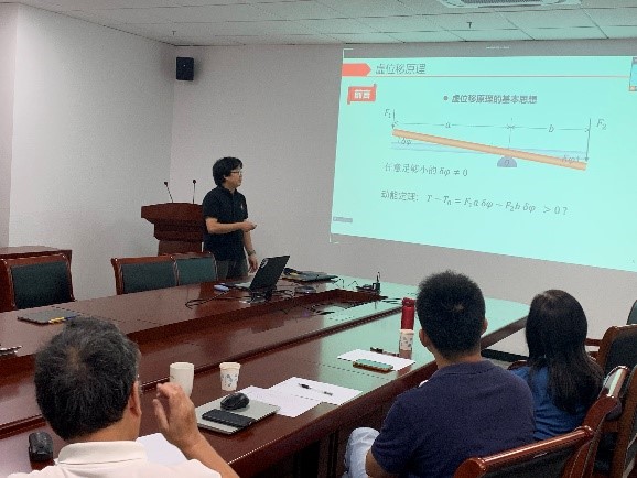根据国家精品课程理论力学教学团队坚持多年的传统,青年教师经学院评审取得本科课程的任教资格之后,必须组织试讲经课程教学团队评审通过,才能走上讲台为全校工科大平台的本科生讲授理论力学。在此之前,要求必须担任课程助教、随堂听课并且完成《理论力学》所有课后习题。马道林和刘显波分别抽取到了理论力学的两个知识点“达朗贝尔原理”和“虚位移原理”进行了一节课的试讲。