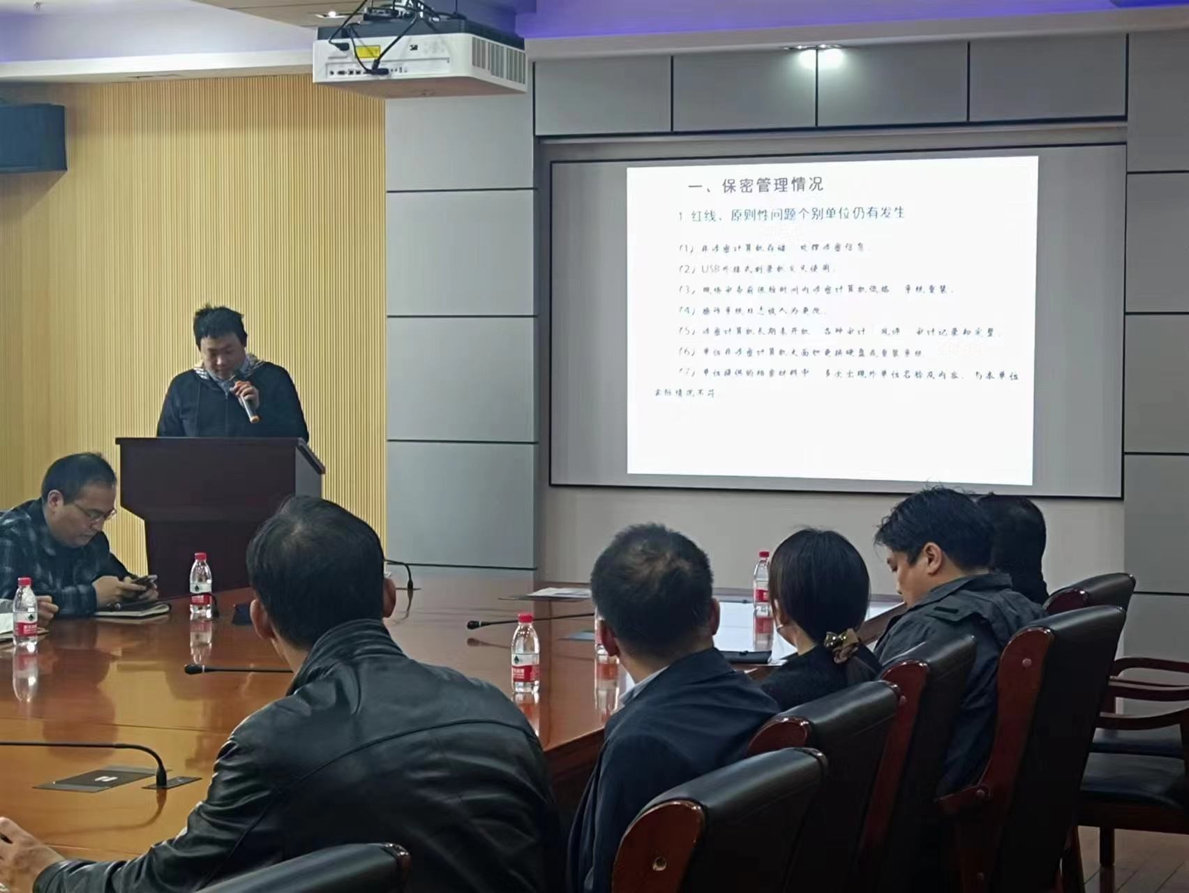 曹智盛老师主要围绕保密管理情况、保密技术管理和现场审查常见问题三个方面进行讲授,同时结合学校和各个学院的工作情况,通过典型案例对日常学习、工作、生活中可能存在的涉密计算机、手机微信群的泄密隐患等进行剖析讲解,举案说法、以案说理,深入分析当前保密工作面临的严峻形势,深刻阐述保密工作的重要性,并提出做好新形势下保密工作的具体要求。