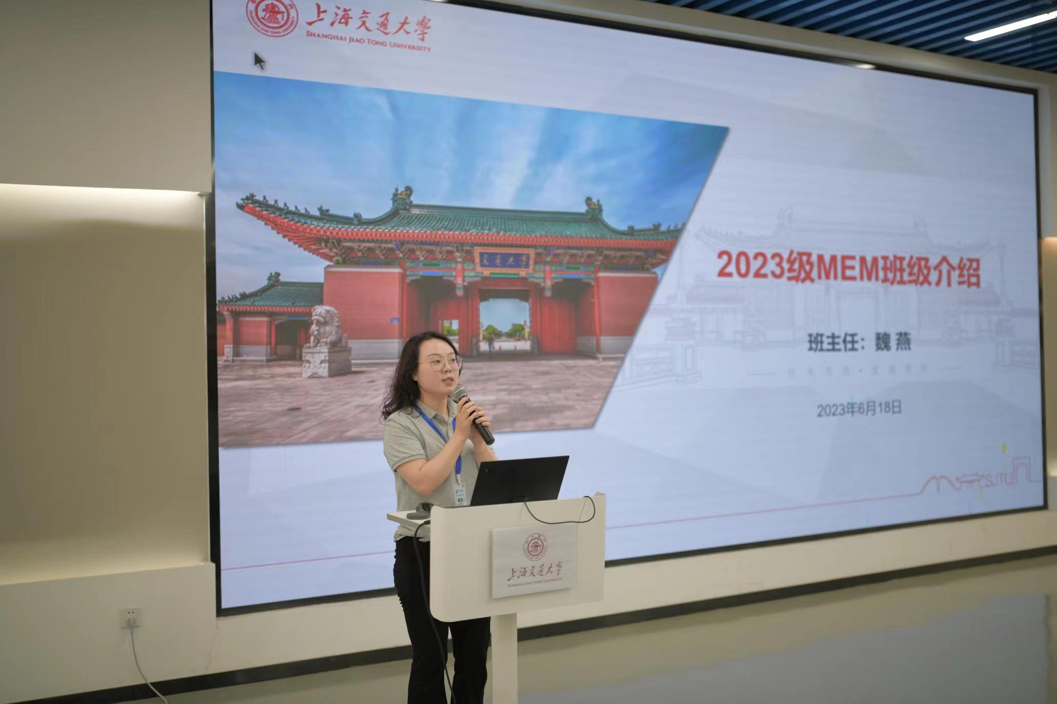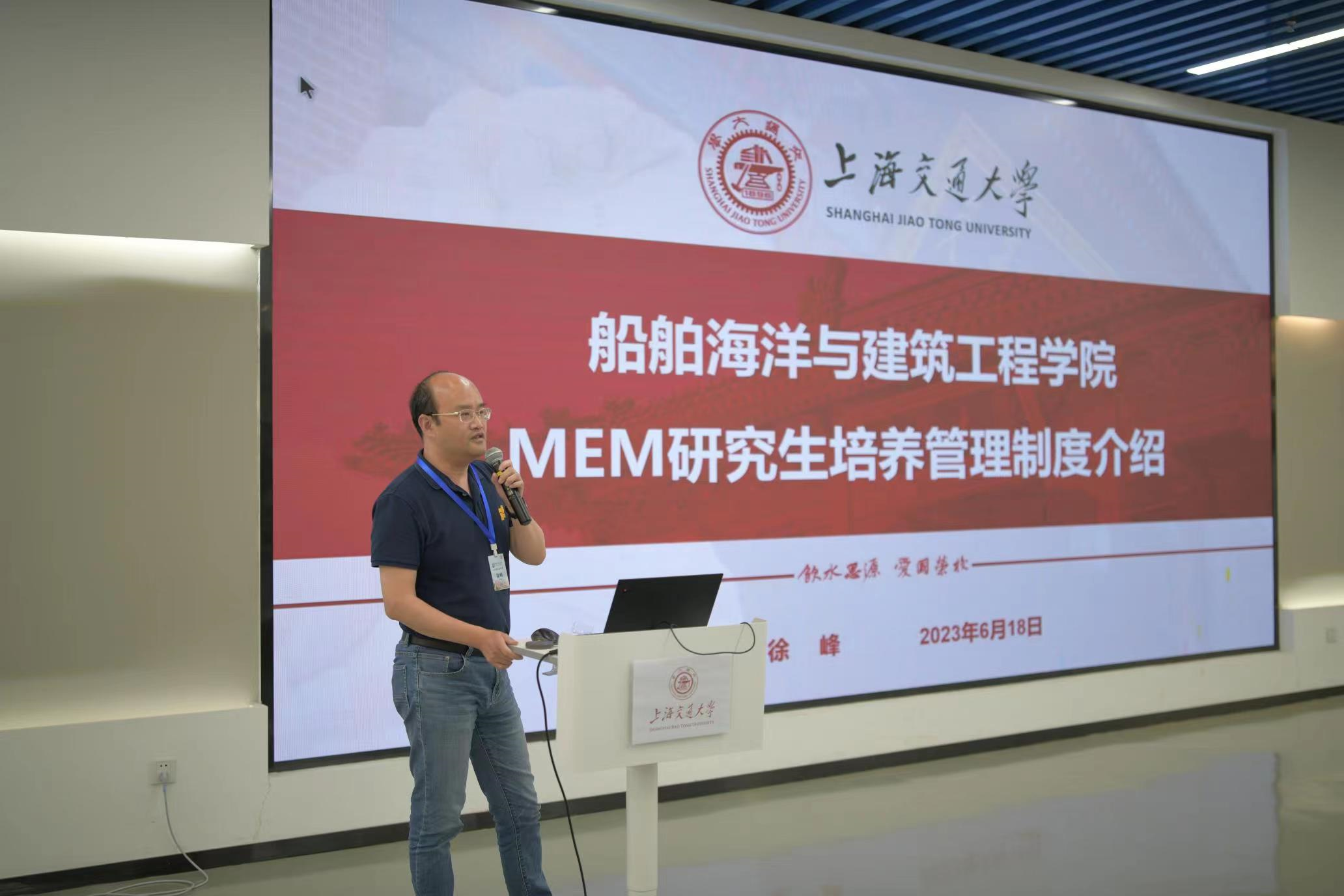 导师代表陈锦剑、陈震、胡举喜、韩兆龙、徐峰、朱宏博,班主任魏燕,2023级全体MEM新生,以及2022级MEM学生代表在木兰船建大楼100号参加新生见面会。会议由方静主持。