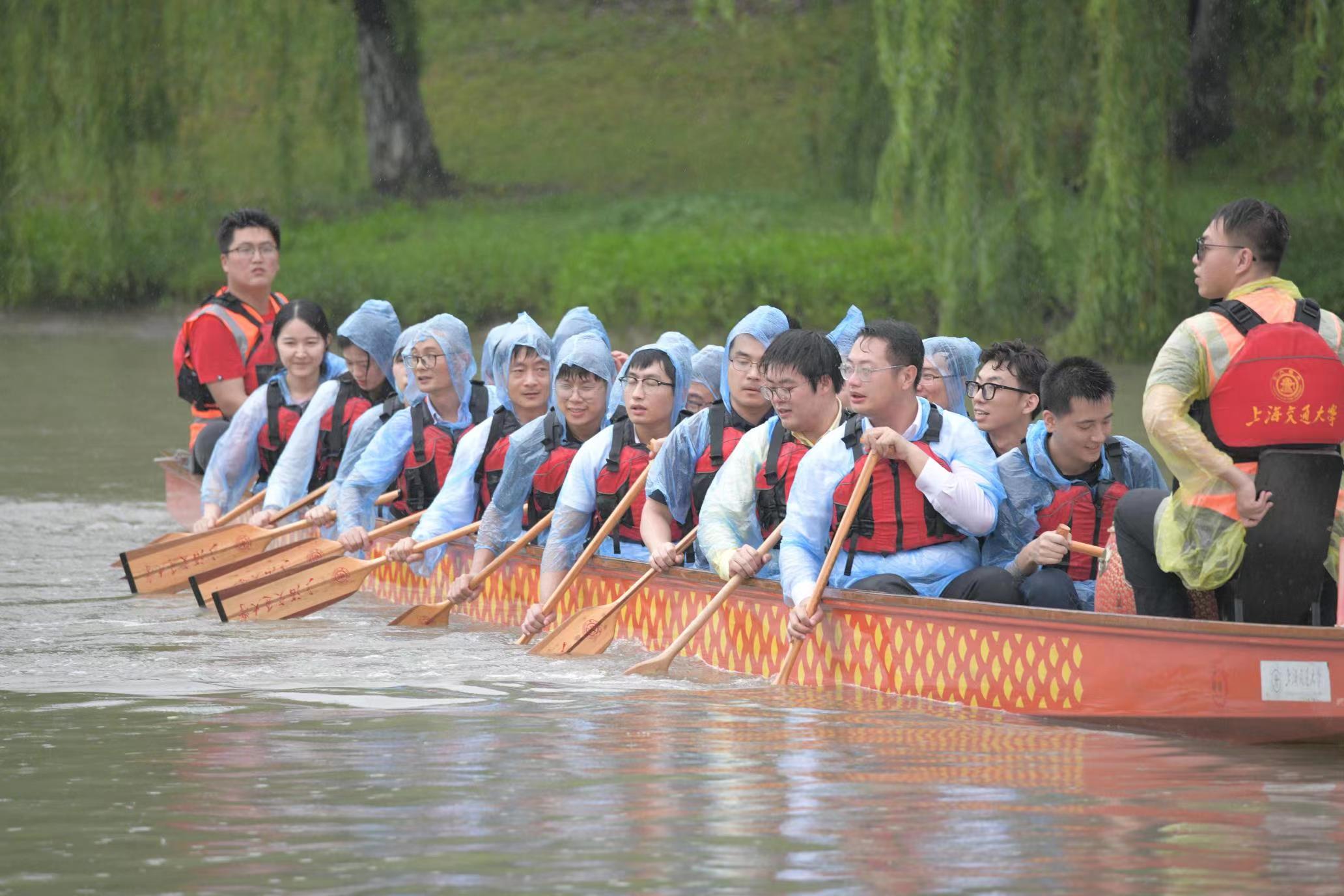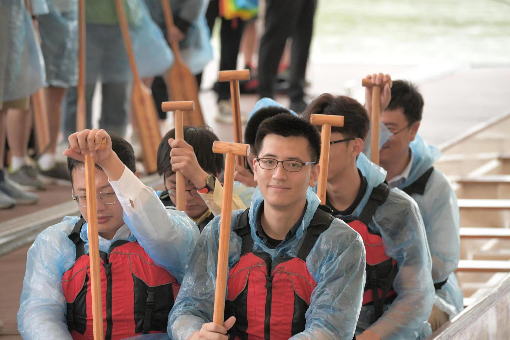 新生见面会后,学院组织MEM新生与船建校友们在校内开展龙舟体验赛。在隆隆鼓声中,来自全国各地的MEM新生们登一舟、凝一心、运桨如飞、劈波斩浪成功完赛。至此,2023级MEM研究生新生学前活动成圆满!