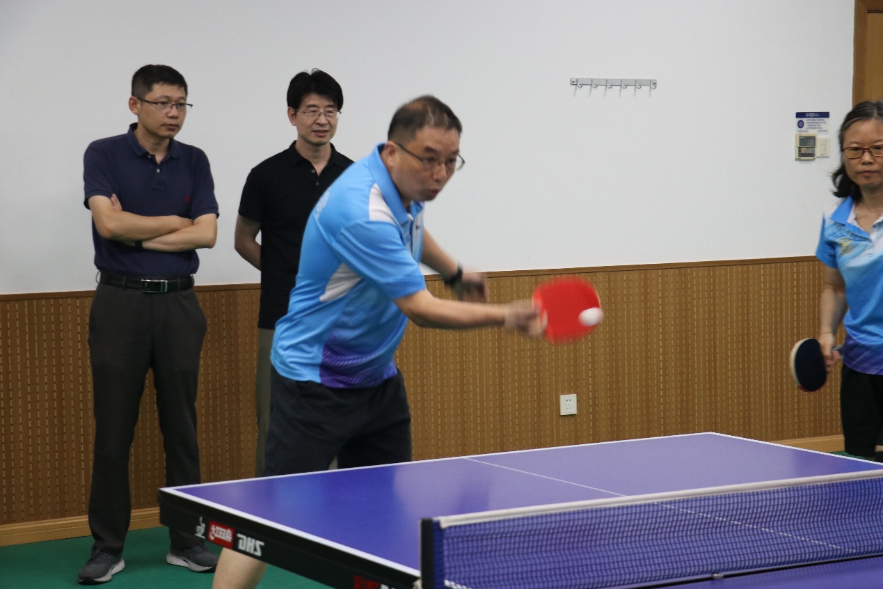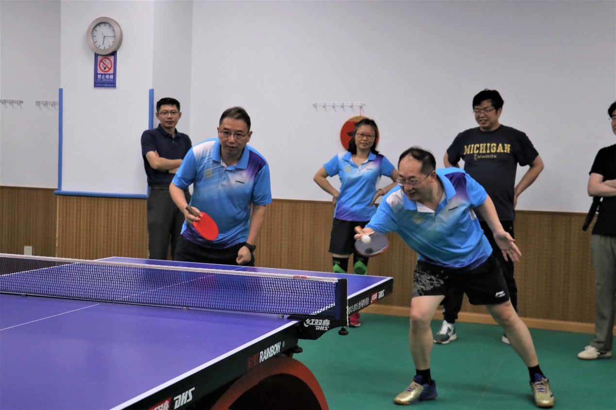 运动点燃热情,促进师生交流。7月5日,交大樱花动漫 -清华飞班联合培养学员师生乒乓球友谊赛在樱花动漫 木兰楼的一楼教工之家举办。樱花动漫 工会组织十余位教师和全体飞班学员开展了精彩激烈的乒乓球对决。学院工会主席刘铸永、副主席袁敏出席活动。