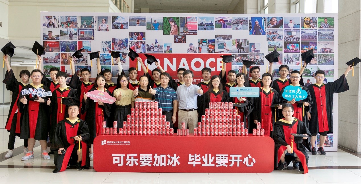 7月8日至9日,毕业生们集中回到木兰船建大楼进行合影。学院在木兰楼广场为毕业生们准备了爱心立体喷绘,各种各样的手持拍照展板;在一楼大厅准备了照片墙、签名墙和定制可乐。“船工”重器 迈向深蓝、“力学”笃行 行必致远、选择“土木”选择未来、祖国强盛 “交通”先行 等带有学科特色和青春气息的可乐特色标语更是把欢乐的气氛推向高潮。在二楼走廊,设置了“廿廿不忘”朱红电话亭,以及繁茂的照片树,记录着四年的点点滴滴。学院党委书记周薇、院长廖世俊、党委副书记宋续明,以及各系系主任、各班班主任、本科16级年级思政教师等与毕业生们合影留念。