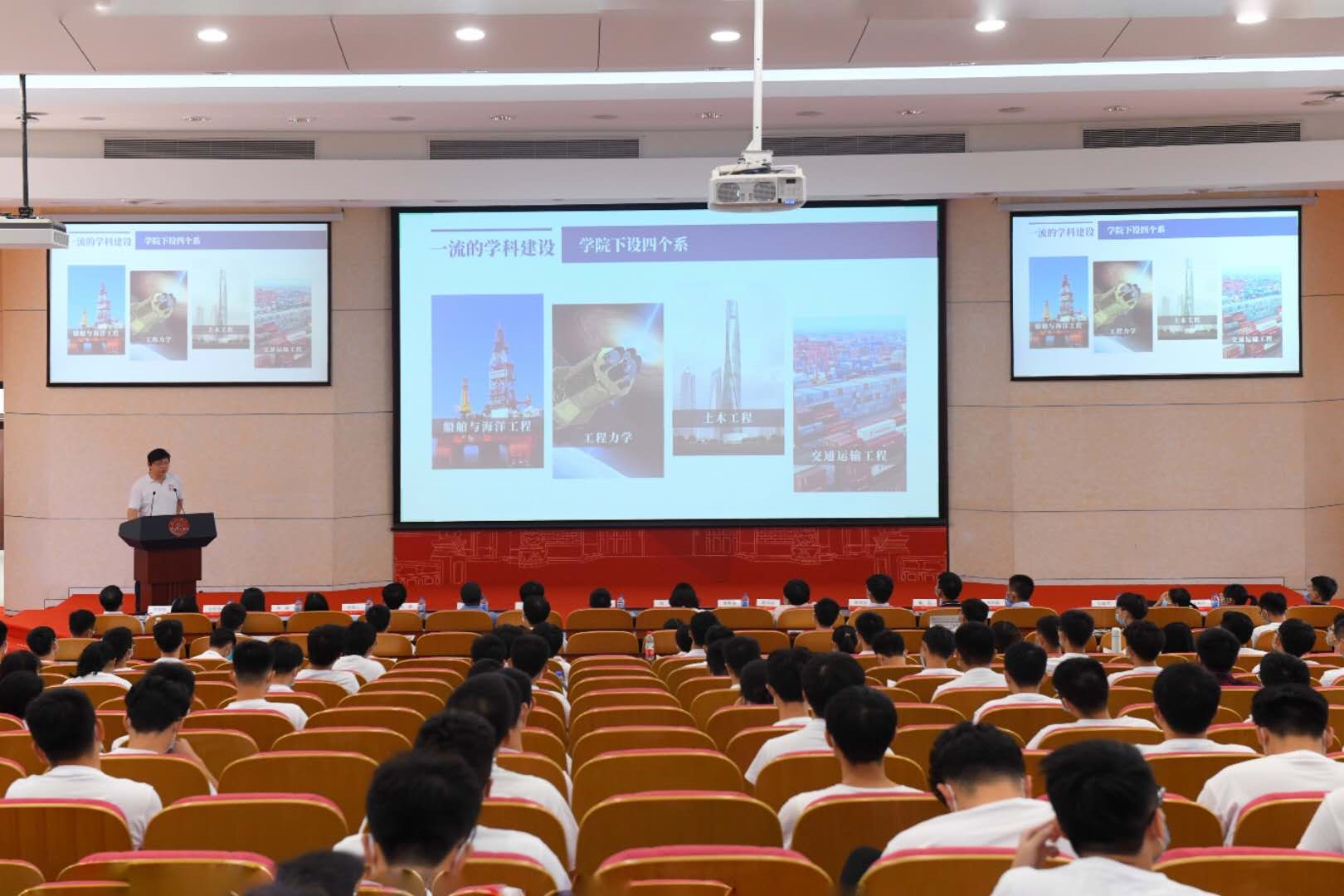 随后,2020级研究生新生代表、土木工程系孟祥成同学发言。他向为顺利开学做出辛勤工作的老师、学长学姐和各位迎新志愿者表示了诚挚的感谢,并分享了成为一名合格的“船建人”的三点感悟与新生共勉:立鸿鹄志,做奋斗者;勤学多练,脚踏实地;保持好奇,保持热爱。